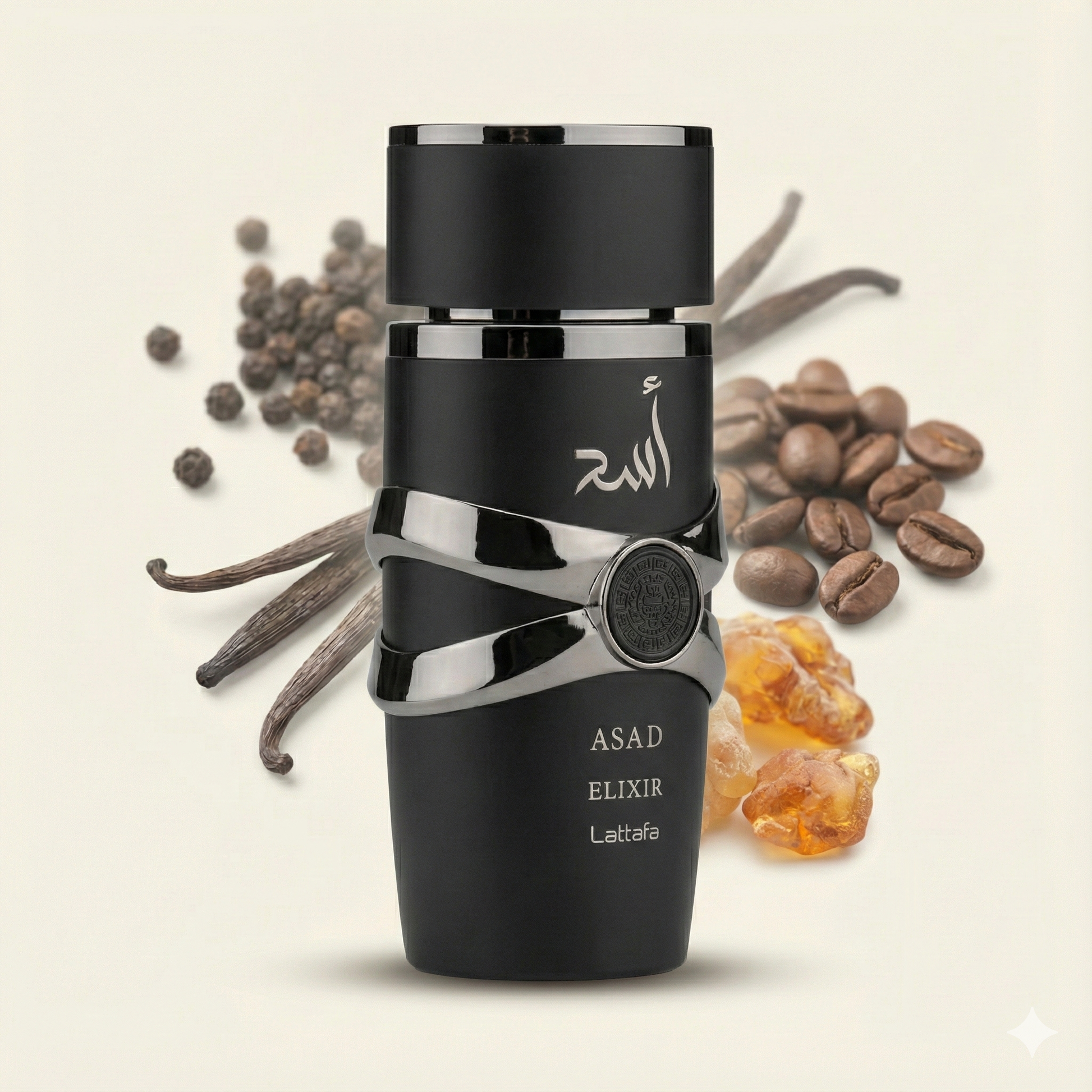 SENTIA – Lattafa Asad Elixir is a powerful and refined oriental amber fragrance, known for its bold warmth, smooth sweetness, and masculine depth.